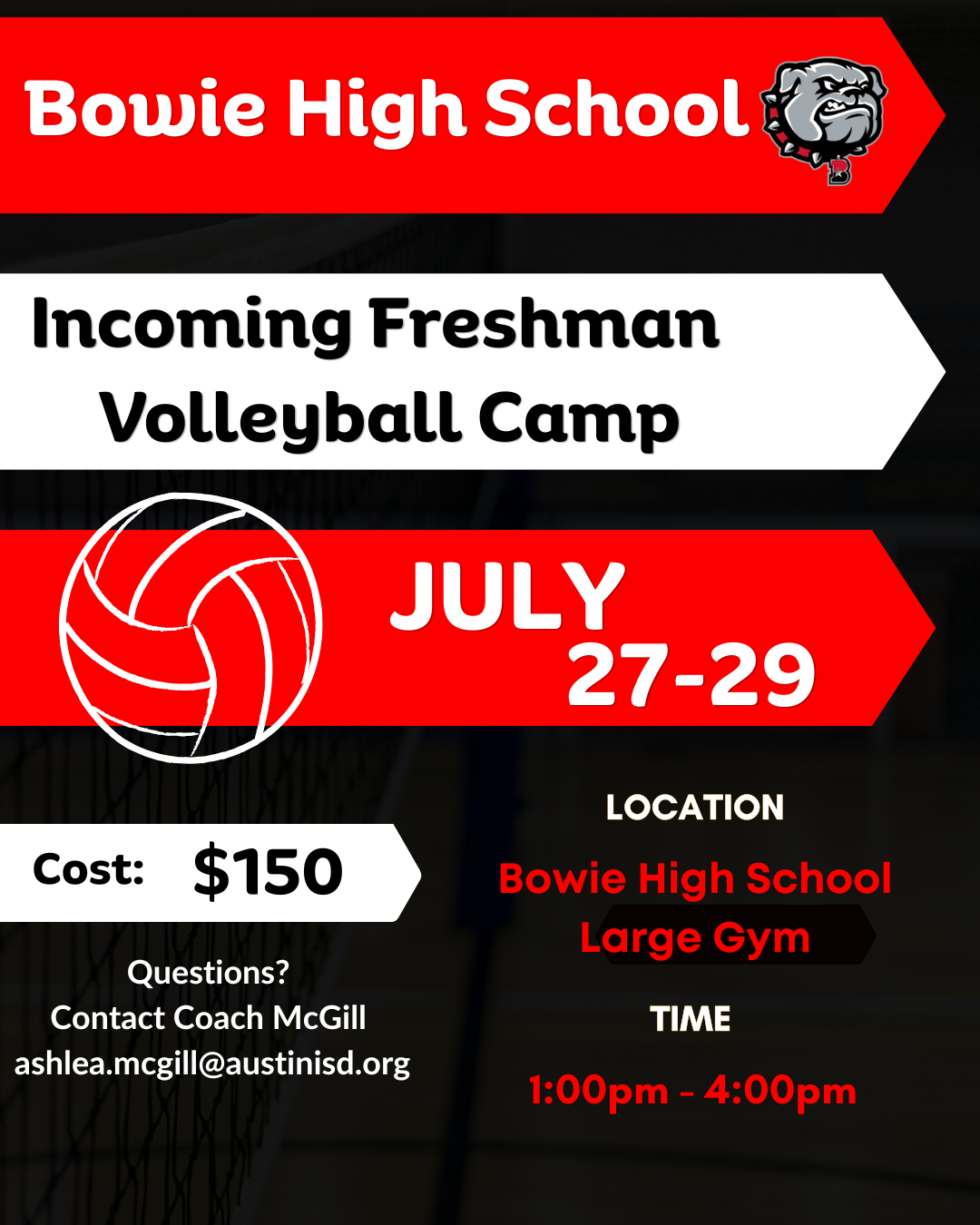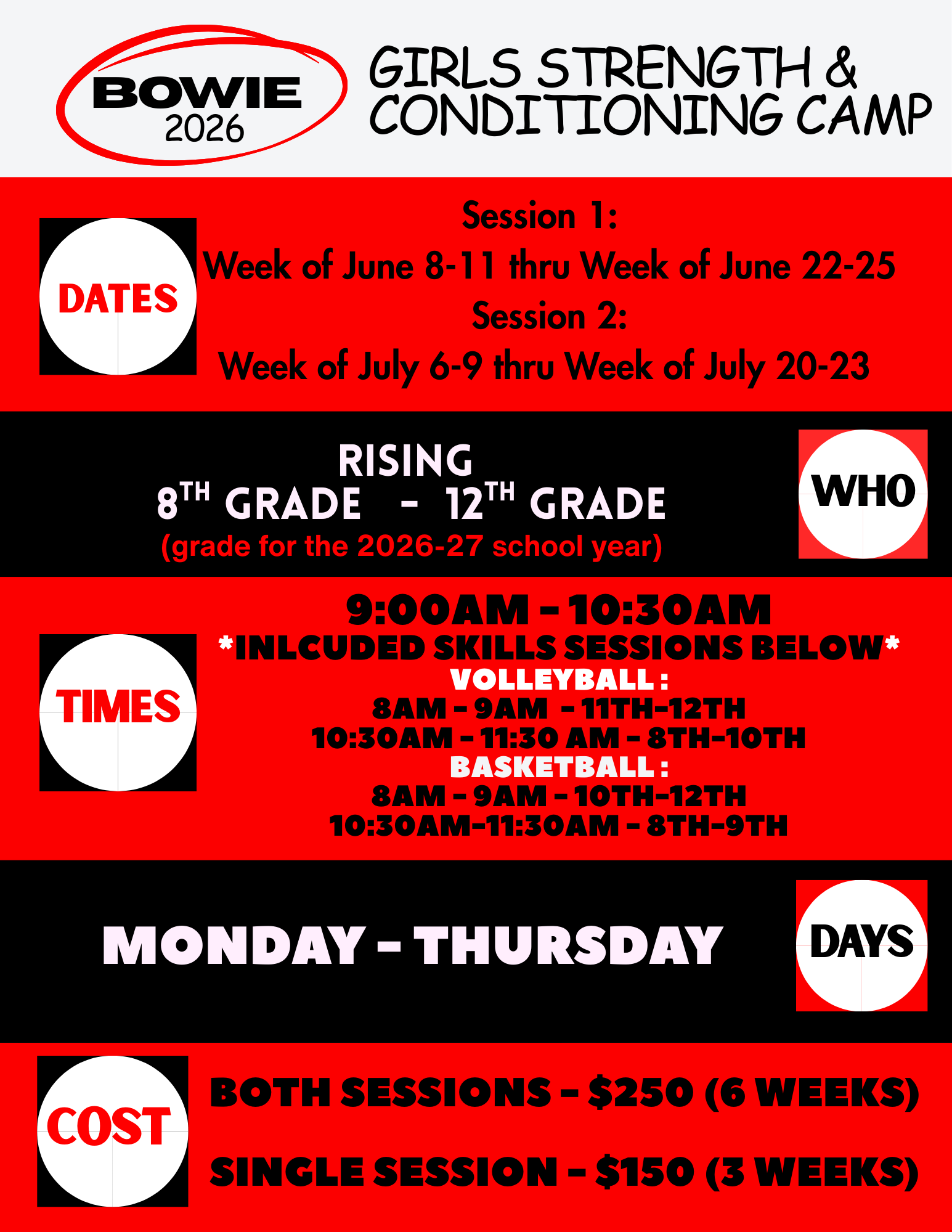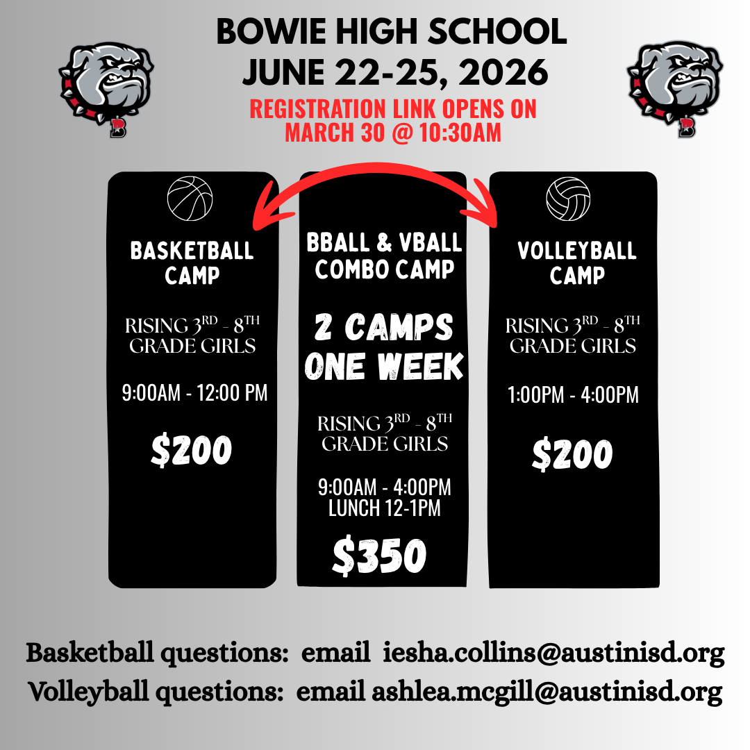 Register Here for Incoming Freshman VB Camp Register Here for Incoming 3rd - 8th Grade Camp Register Here for Bowie Girls Sport Camp Register Here for 2026 Bowie Girls S&C Camp